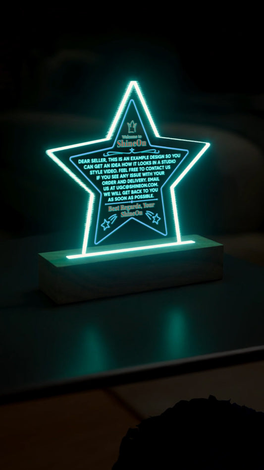 Acrylic Star Plaque Colored Print Studio Quality With Wooden Base LED RGB - Indoor Scene 2 - 3D