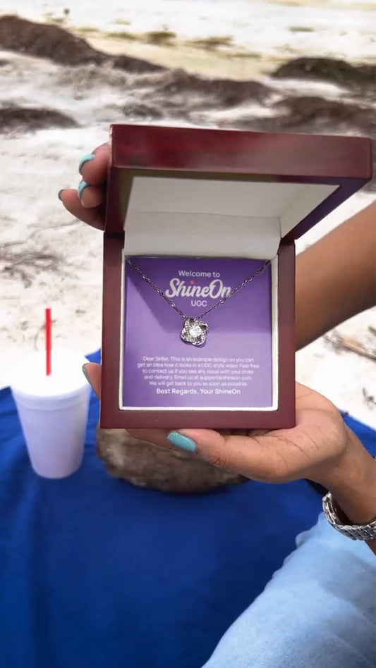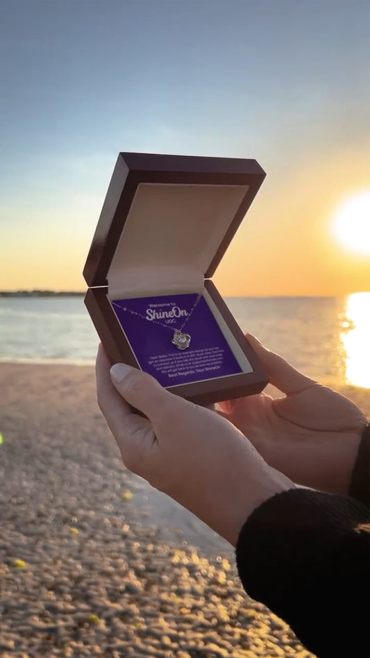 Love Knot Necklace White Gold With Box - Sunset Beach Shot - UGC 7
