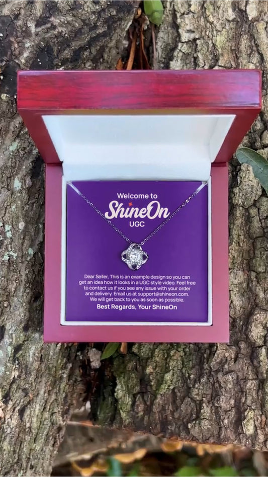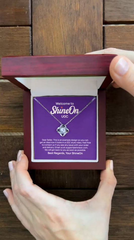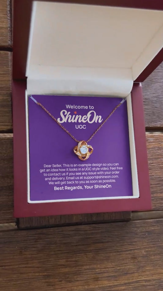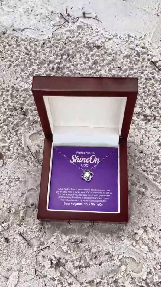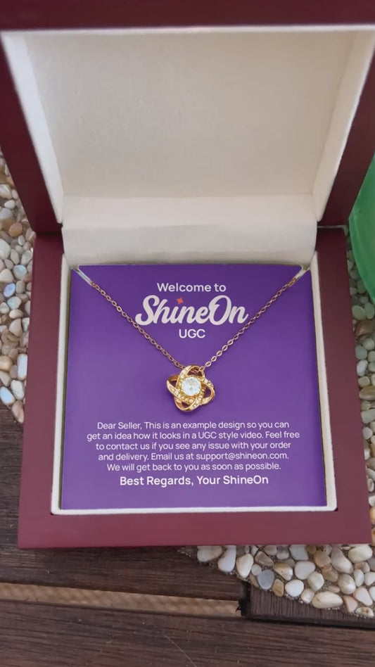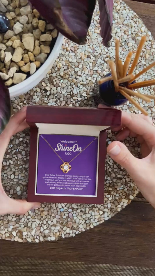 Love Knot Necklace Gold With Box - Wooden Table - UGC 2